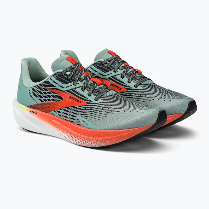 کفش دویدن *Brooks Hyperion Max* با کد مدل *1103901D426، یک ترینر سبک و پاسخگو است که برای افزایش سرعت طراحی شده است. این نسخه خنثی (Neutral) دارای میانهکفی پیشرفته با فوم **DNA FLASH* سبک و پرفشار پر شده با نیتروژن است—که ضربهگیری مؤثر و بازگشت انرژی عالی را فراهم میکند. فناوری *Rapid Roll* در طراحی زبرین (rocker) کف، انتقال روان گام از پاشنه به پنجه را تقویت میکند و تجربهای پویا و روان به دونده میدهد. رویه کفش از پارچهای تنفسی ساخته شده و با تکنولوژی *3D Fit Print* تناسب راحت و محافظتی دارد. زیره با پوشش *Green Rubber* اصطکاک بالا، دوام و چسبندگی مناسبی ارائه میدهد در حالی که وزن کلی کفش حدود *221 گرم* است که باعث سبکی و راحتی در دویدنهای تند و طولانی میشود. علاوه بر این، Hyperion Max در فهرست بهترینهای سال ۲۰۲۳ از سوی *Runner’s World* قرار گرفته که کیفیت و نوآوری آن را تأیید میکند